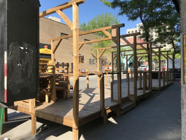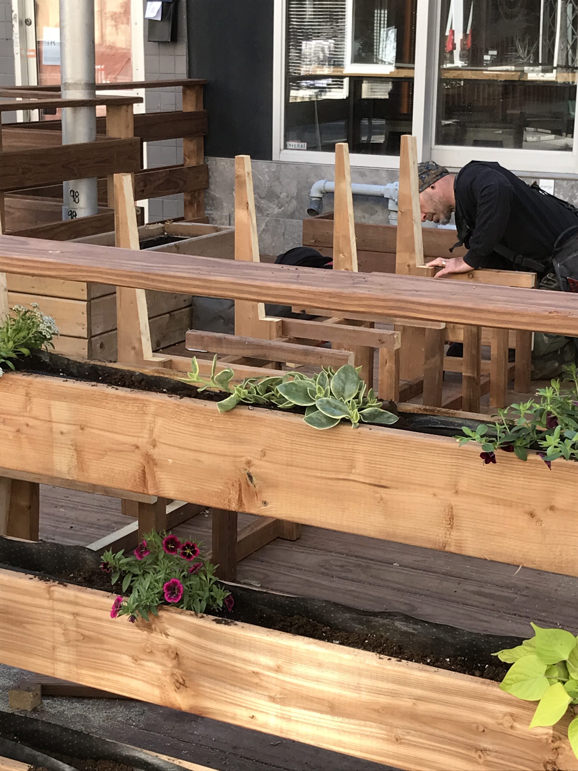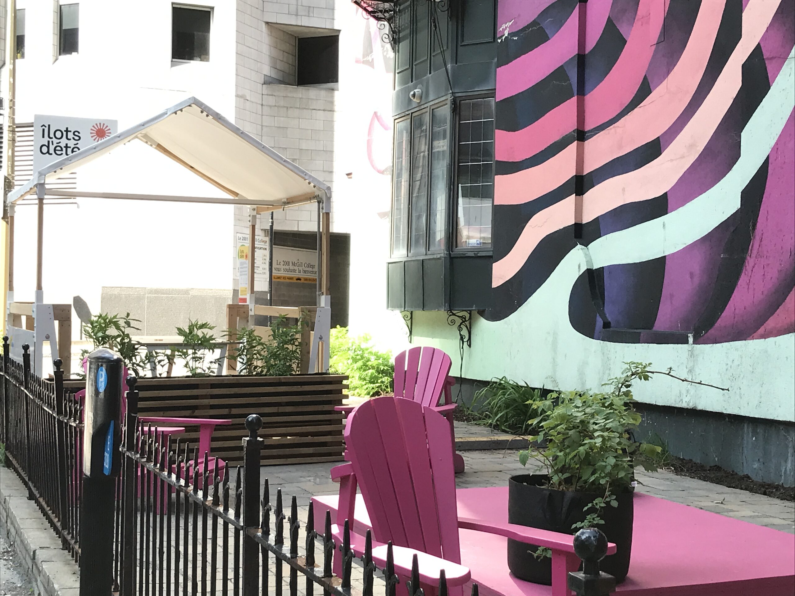 I’m not much of a bar person even when there’s not a plague on, but I do enjoy the creative and colorful restaurant terrasses and city-sponsored spaces that pop up all over town in summer. Several streets are blocked off for the season and furnished with street furniture and decor. Some are even equipped with power and wifi so you can work en plein air.