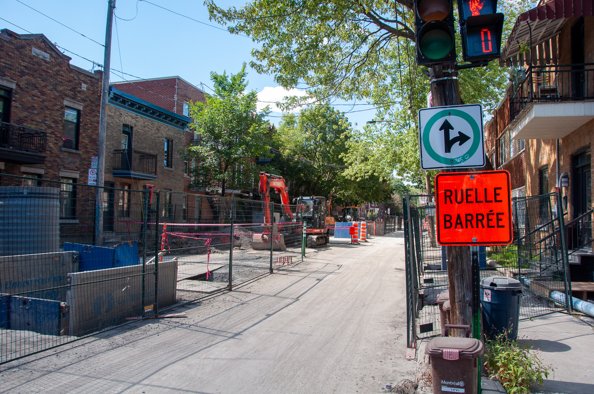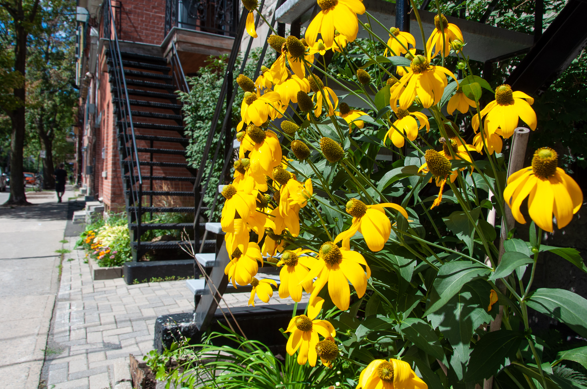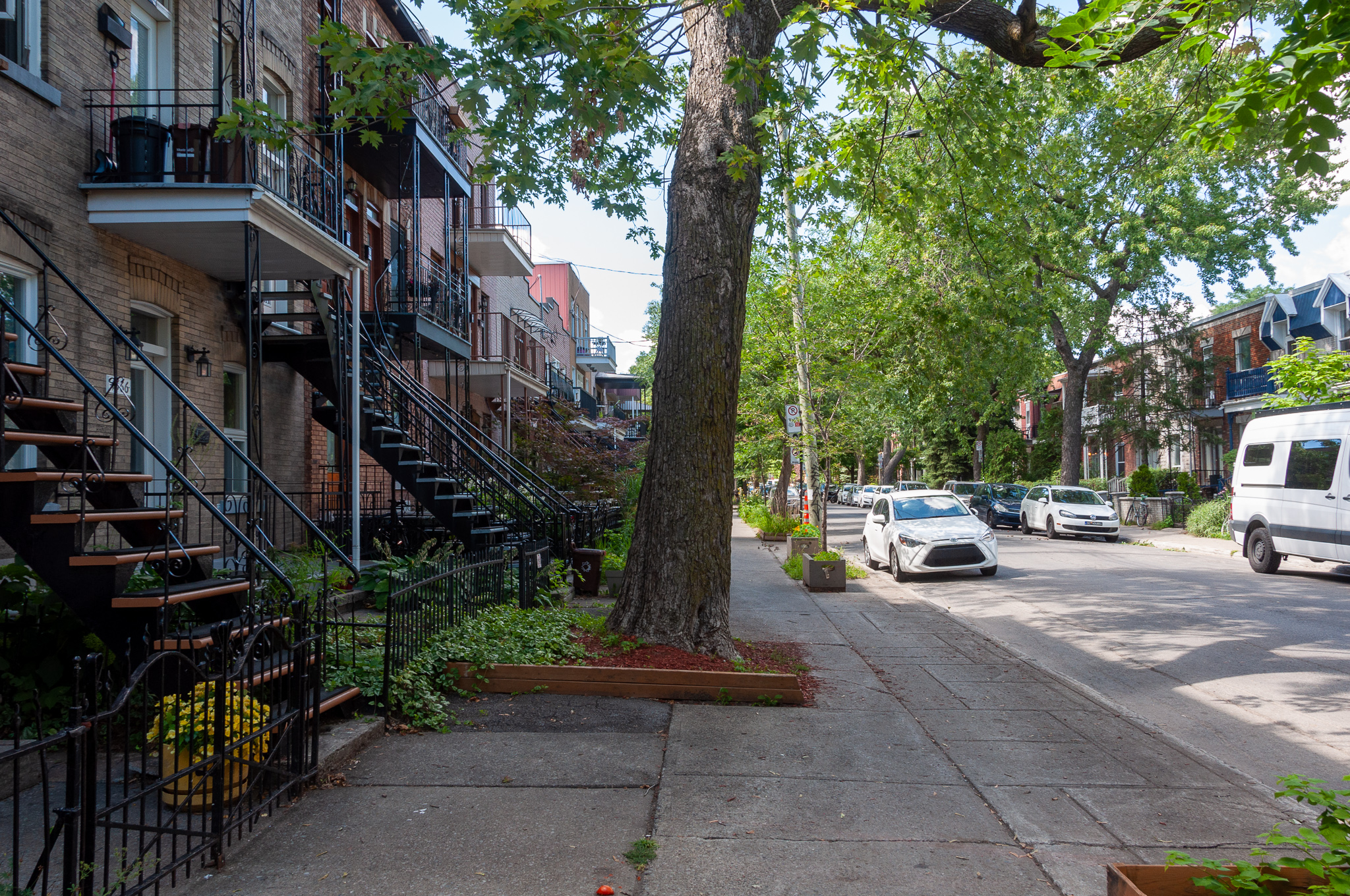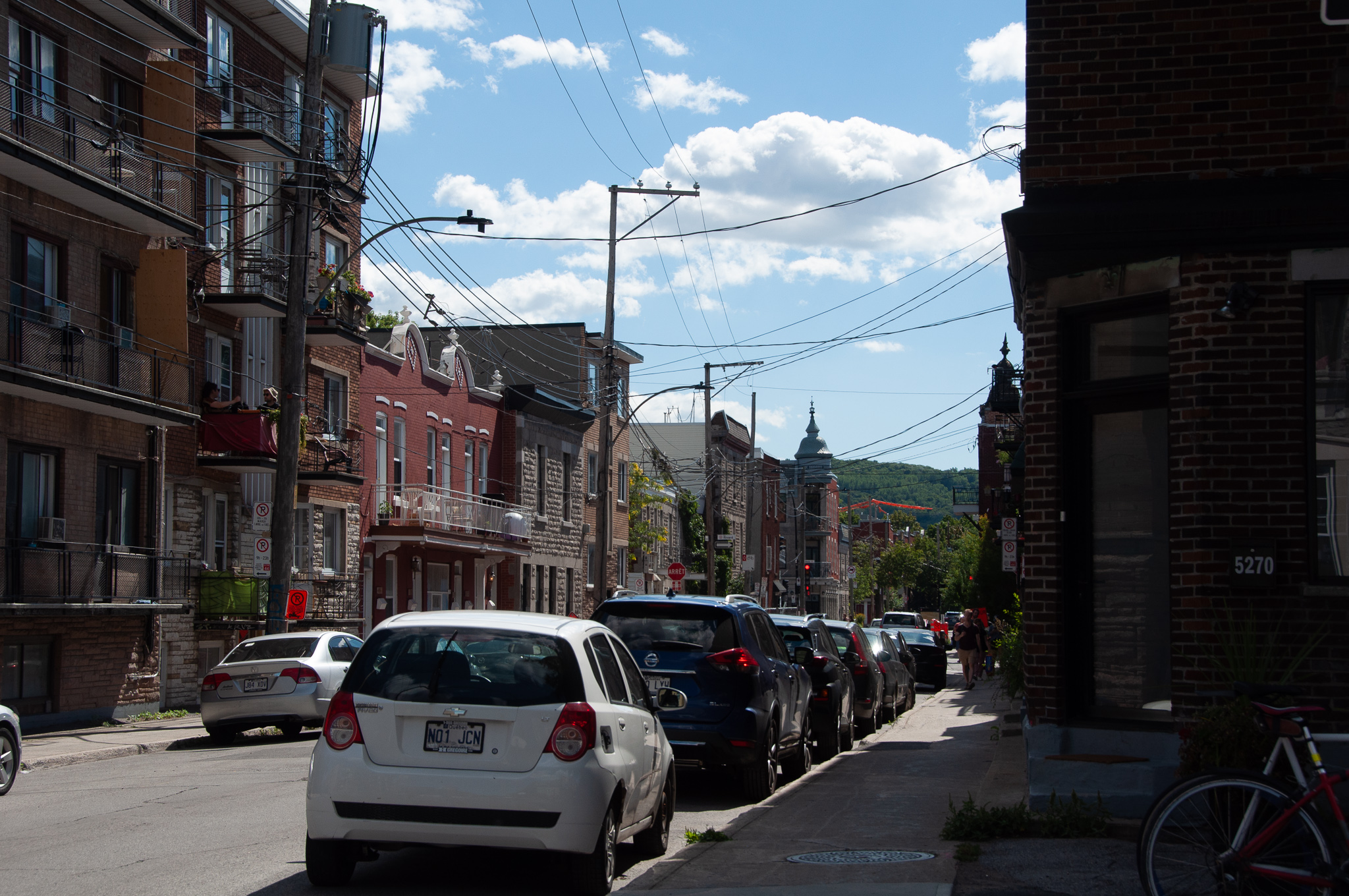 From the busy walk street, I wended my way gradually westward, through the beautiful shady streets of Le Plateau. After a while, between the buildings, I could glimpse the north side of the Mont!