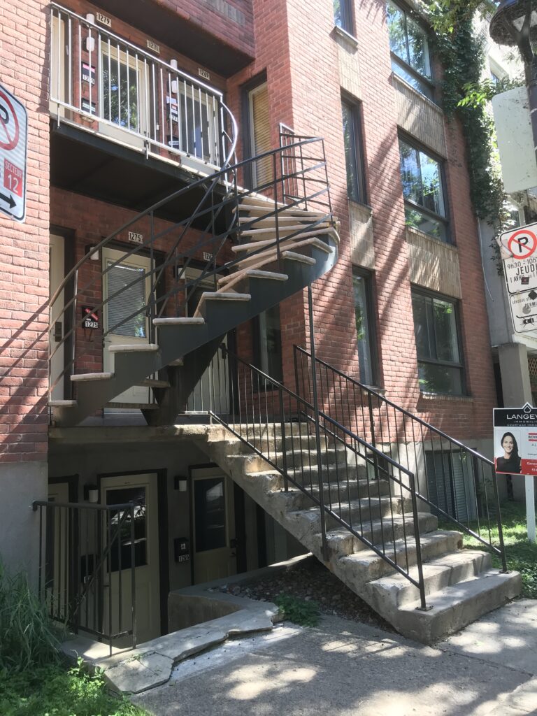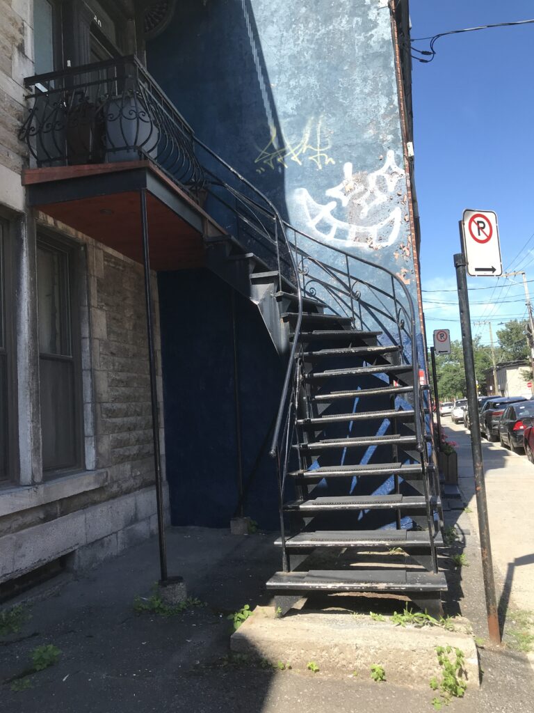 Though external stairs neatly satisfied both a landlord’s and the Church’s needs, the needs of tenants were perhaps less well attended to. Usually tenants assume all the risk and maintenance of these staircases, which means constantly clearing one’s staircase in the winter unless one doesn’t want to leave one’s apartment for six months, and mitigating the slip hazard posed by Montréal’s constant dousing rains or ice storms.