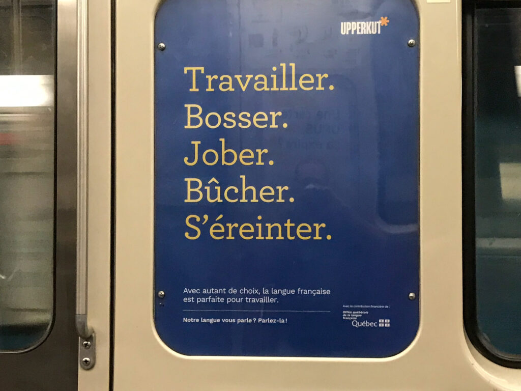 One could write a great deal on the subject, but I will spare you my ill-formed and not-fully-coherent thoughts on the matter. Instead, I will present some linguaganda that I saw posted on the métro this morning, designed to encourage the use of French at work: