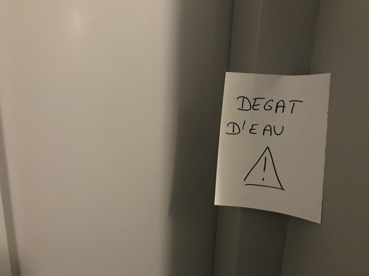Degas d’eau means “water damage.” Uh-oh.
