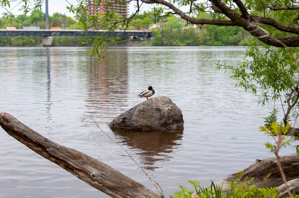 My destination was Parc-nature de l’Île-de-la-Visitation (Visitation Island Nature Park). This park is along the northern-edge of the island in the Prairies River, and it has a lot going on. There’s a historic mill site, a historic site of cider presses, nature trails, a dam/hydroelectric complex on the Prairie river, picnic grounds, lookouts, and more.
