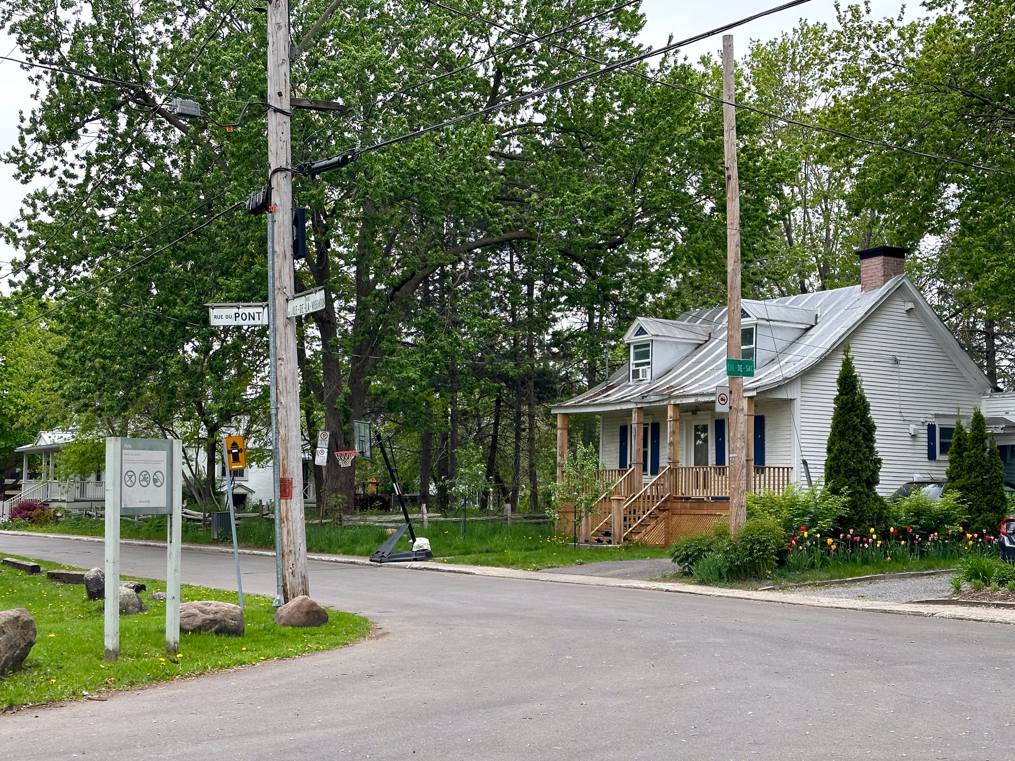 I failed to photograph the old mill or other historic relics at the park. I didn’t photograph the bridges or community gardens or the restaurant at the old mill. Instead, I wandered around on the various trails, and emerged a few times into pleasant little neighborhoods. I admired the spring flowers. But after a few hours, it was time to return home. So I found the Bixi bike stand (which was completely full of bikes!), and pedaled my way back.