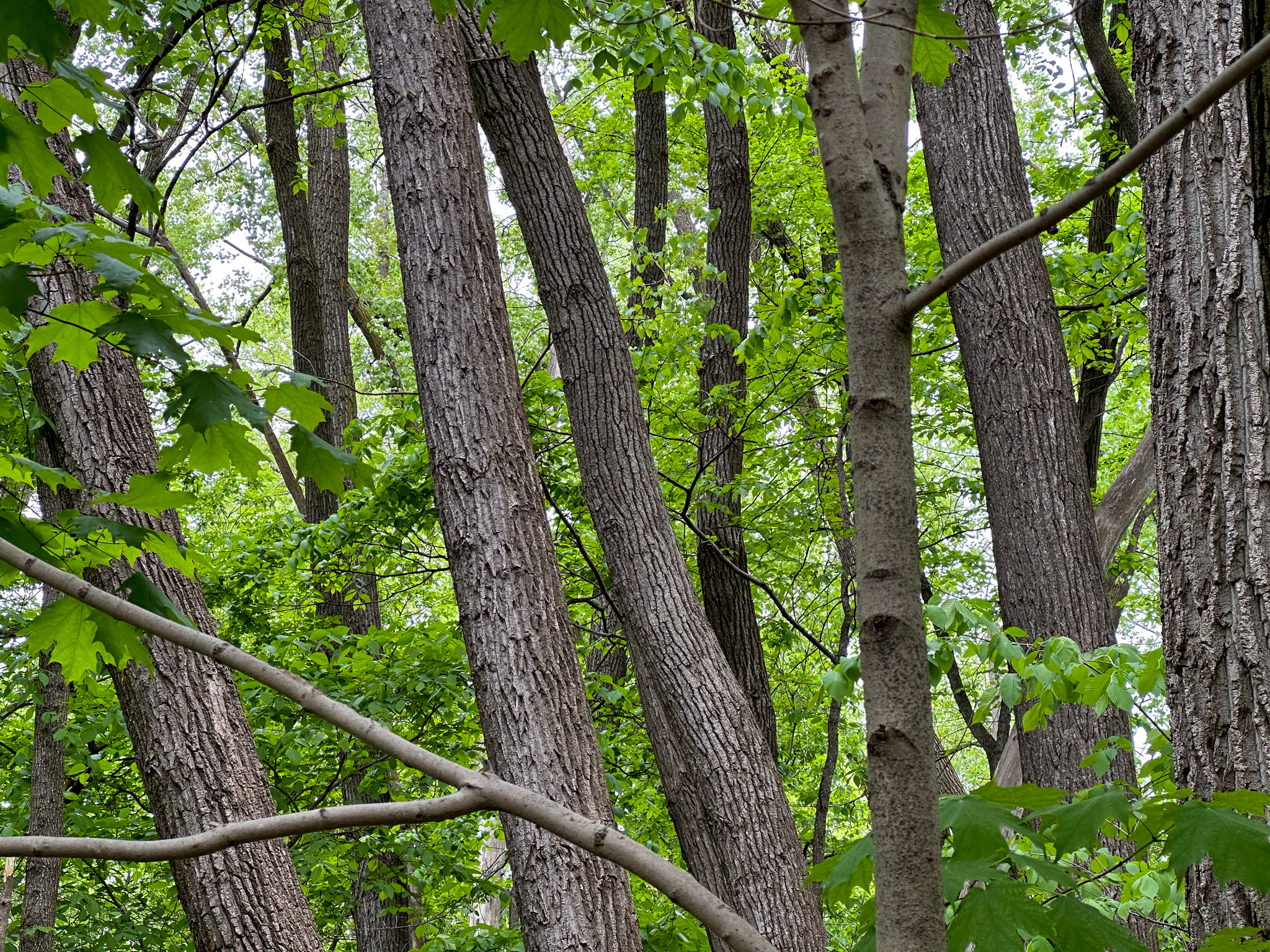 The park has some very nice, cool woods. It’s very green and quiet (in between the joggers and birders). The trees are all full of seeds. It’s different than trees I’m accustomed to, but many species of deciduous trees here flower and produce seeds even before they leaf out in the spring. Another thing I’m not entirely accustomed to is a plant that is related to one that’s all over California. The color and layout of the leaves triggered a semiconscious fear response. Looking closer, I understood why: poison ivy!