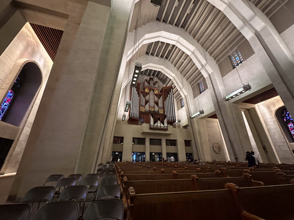 It’s one of the largest cathedrals in the world, perched high on the southwest-facing Côte-des-Neiges side of Mont Royal. Its broad stairs and terraces have a commanding 180º view, with the Saint Lawrence river visible to the south and east, and the Laurentians visible to the west. The exterior is considered Renaissance Revival, while the interior is a surprising Art Deco.