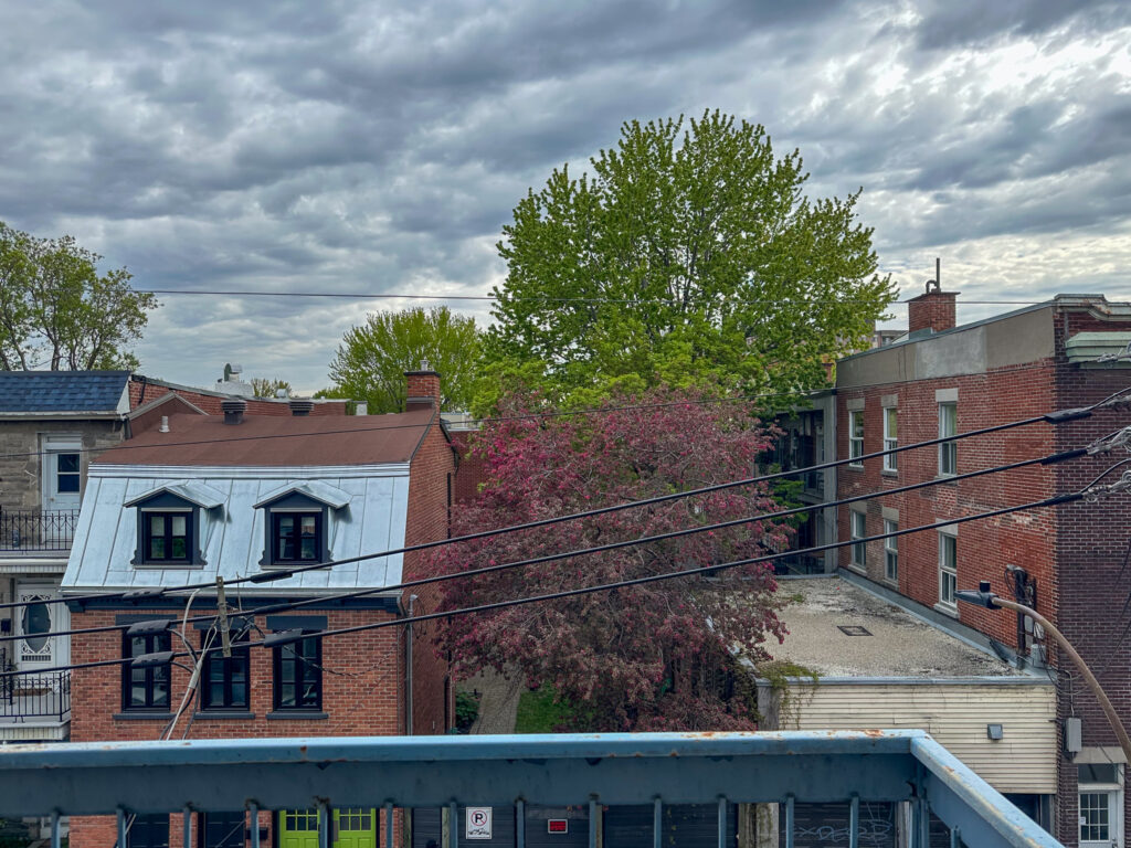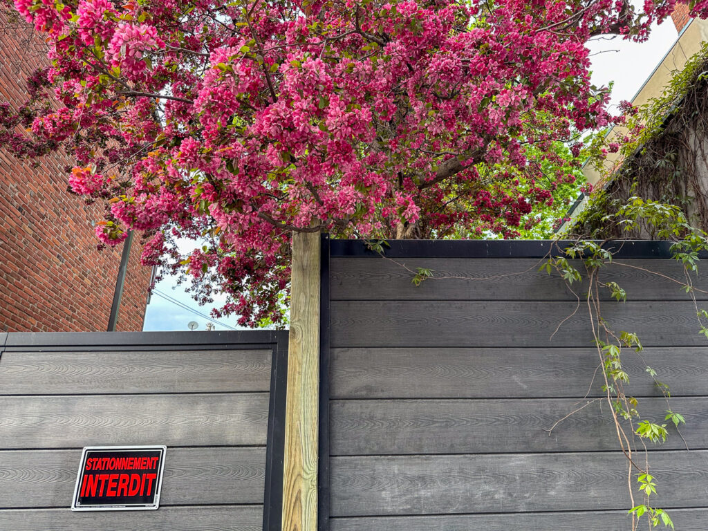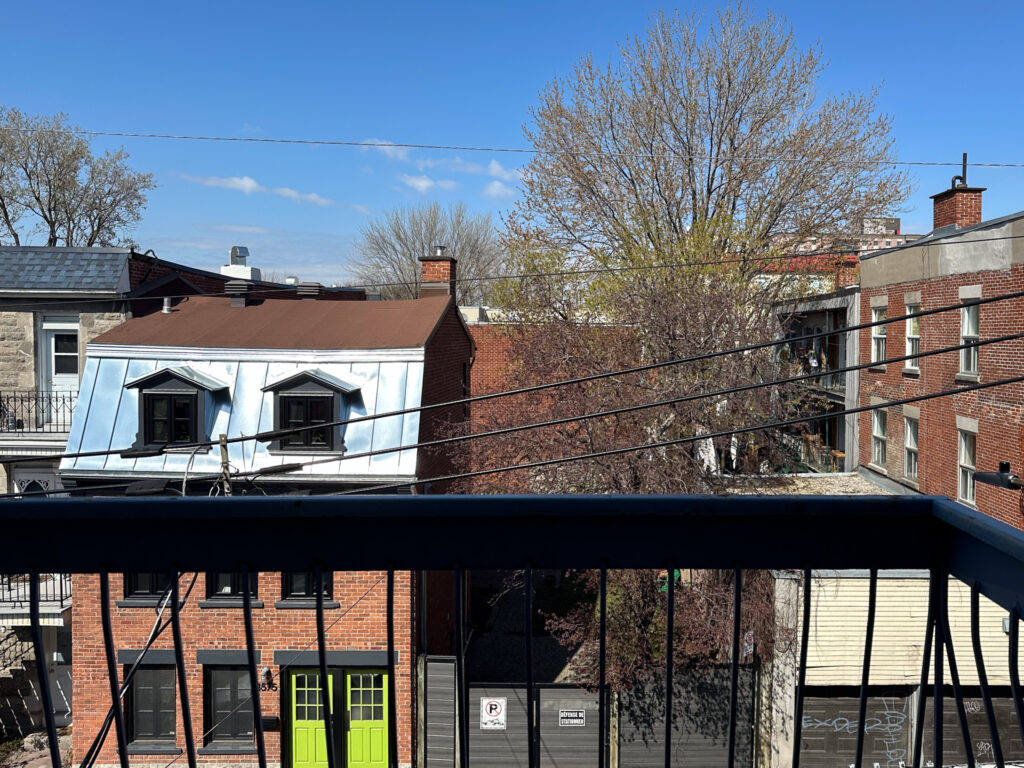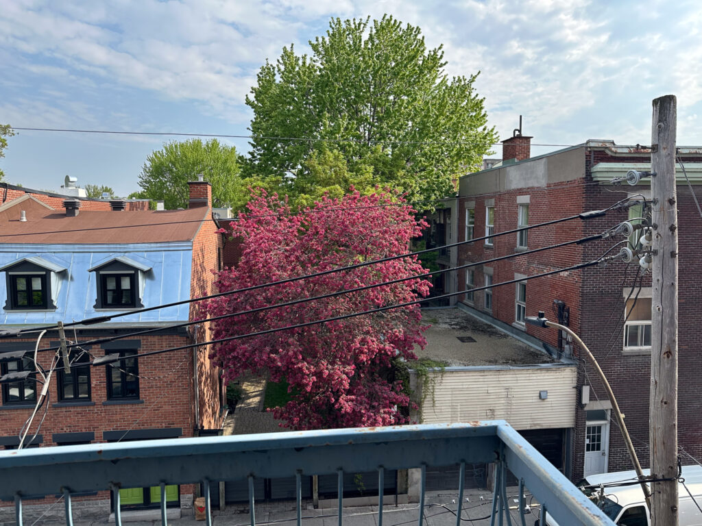 From the front-facing window and small balcony at the apartment, there’s a view of the street below and the shaded courtyard of the house across. When we first arrived, the trees were mostly bare or just beginning to leaf out.