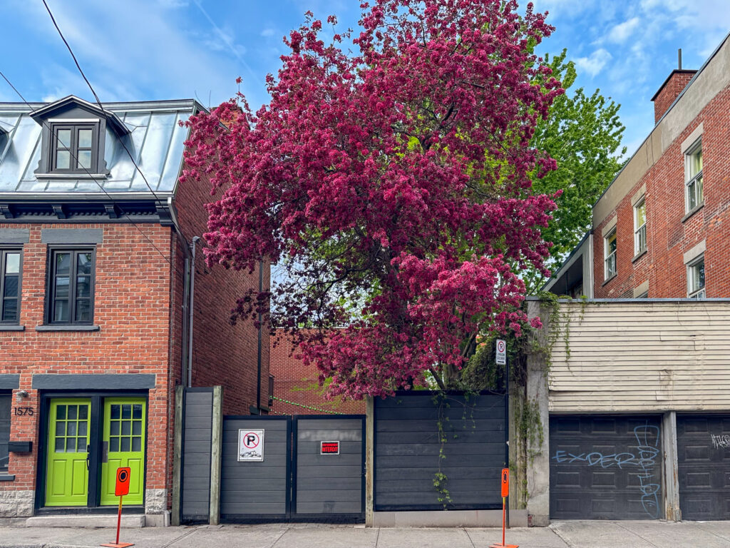 Photographs don’t do it full justice. That tree is downright spectacular! Based on a similar tree we saw at the botanical garden, we think it’s a Japanese crabapple (Malus floribunda).