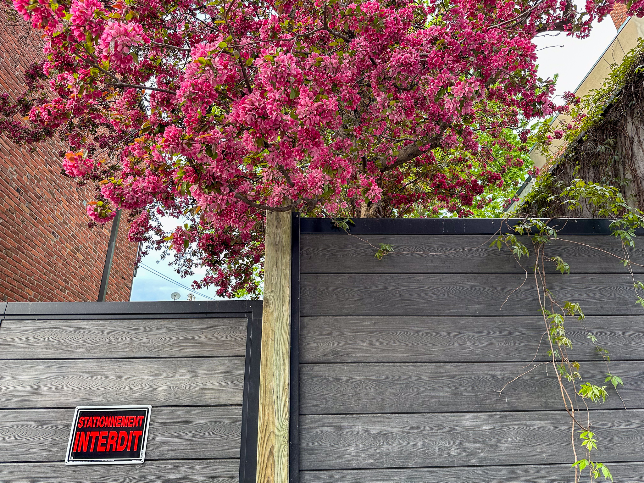 Photographs don’t do it full justice. That tree is downright spectacular! Based on a similar tree we saw at the botanical garden, we think it’s a Japanese crabapple (Malus floribunda).