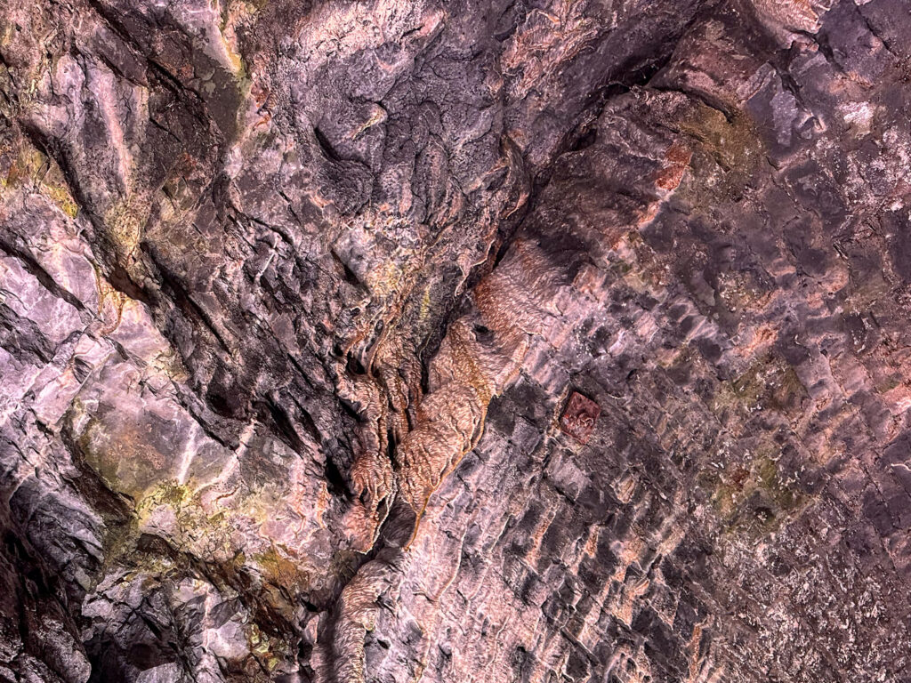 The town has installed a walkway and lighting and some interpretive displays. It’s surprisingly airy and non-calustrophobic for a cave-like place. Interestingly, it’s old enough that leaking groundwater has formed accretions like any natural cave.