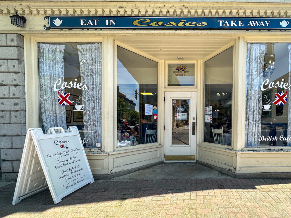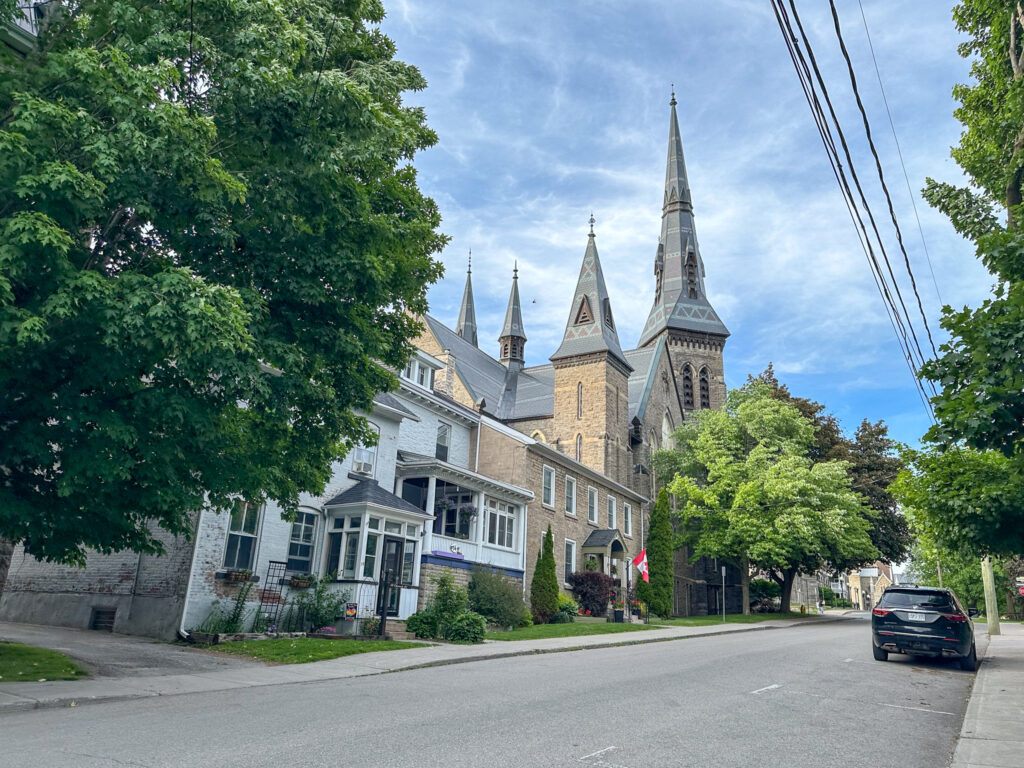 We walked into town along Perth street, where brick houses from the 1880s sit next to stone houses from 1810 and pebble-walled or vinyl-sided homes from the 1970s. The main drag, King Street, has book stores and pottery shops, restaurants, thrift stores, cannabis shops, and even a record store.