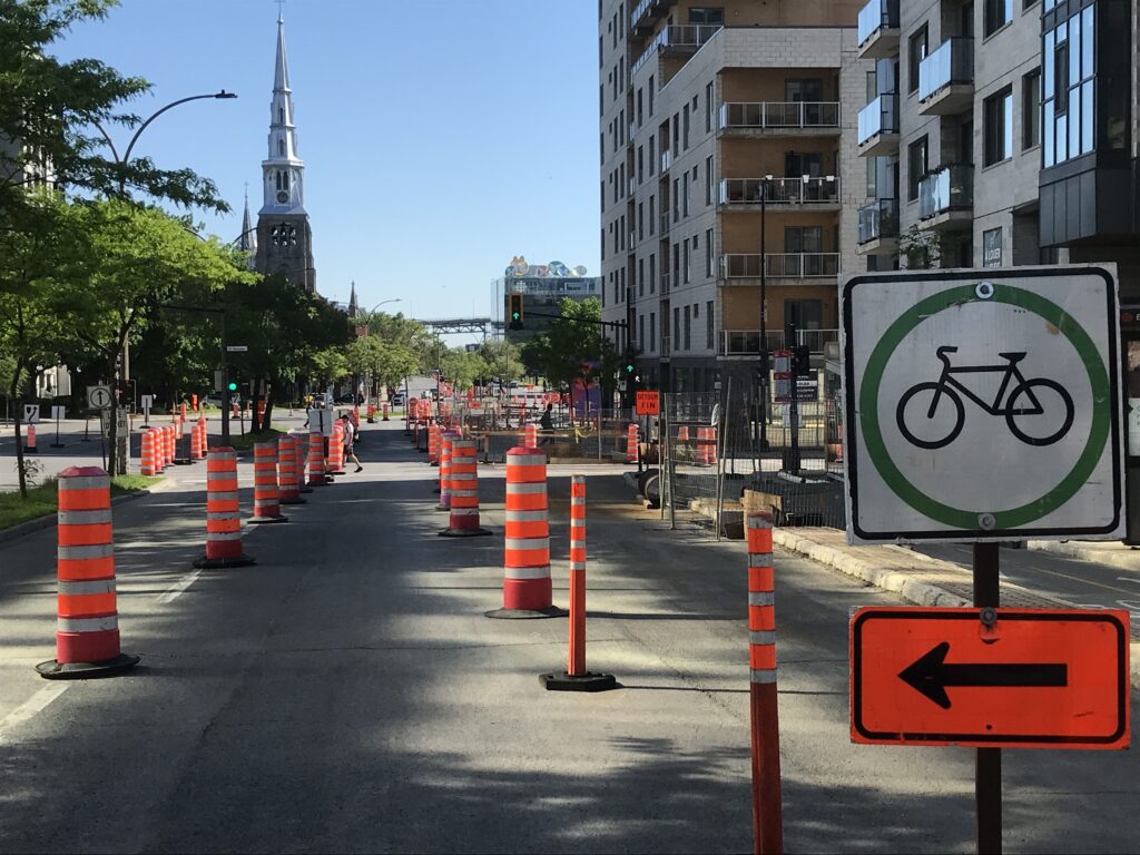 This is funny because traffic bollards and street closures are a major topic of gaily grim humor in Montréal. My only problem with this graphic is that most of the bollards I encounter are columnar ones, not conical…yanno, like the ones outside our apartment building *right now*: