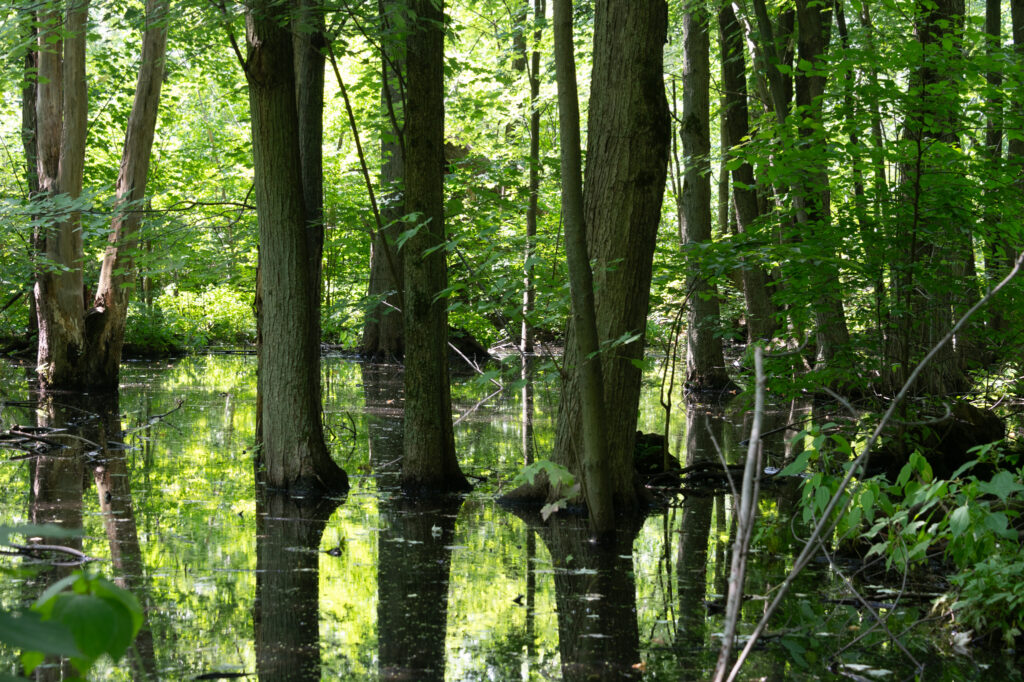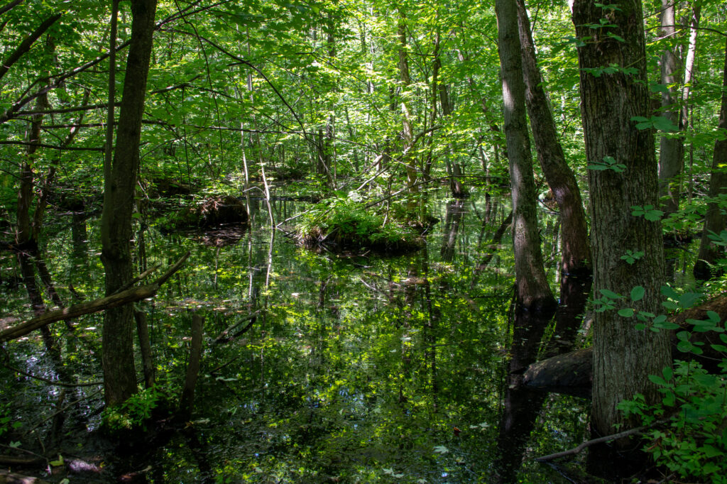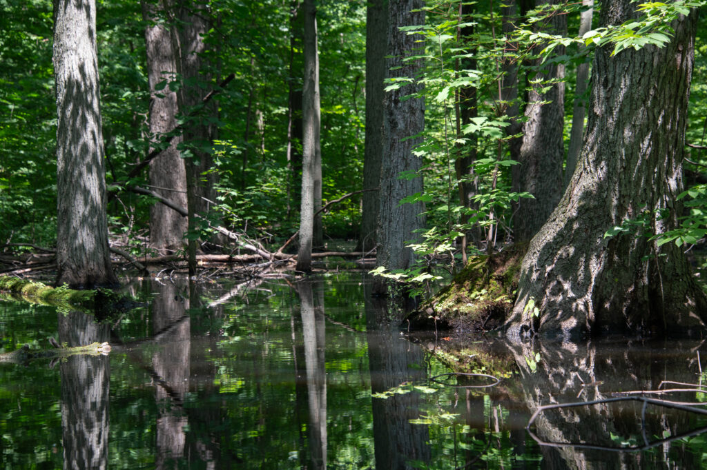 The trail was wide and well maintained, and after just a few steps I felt like I was in a different world of quiet, cool green. Further along, there was evidence of recent water accumulation. And then, before I knew it, I was passing through what I could only describe as a bayou.