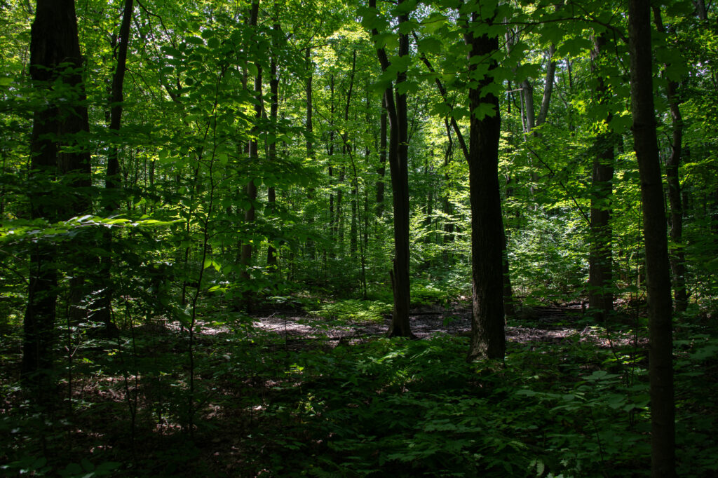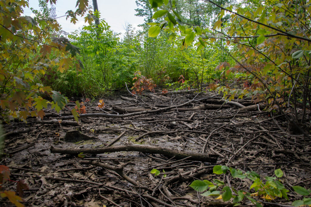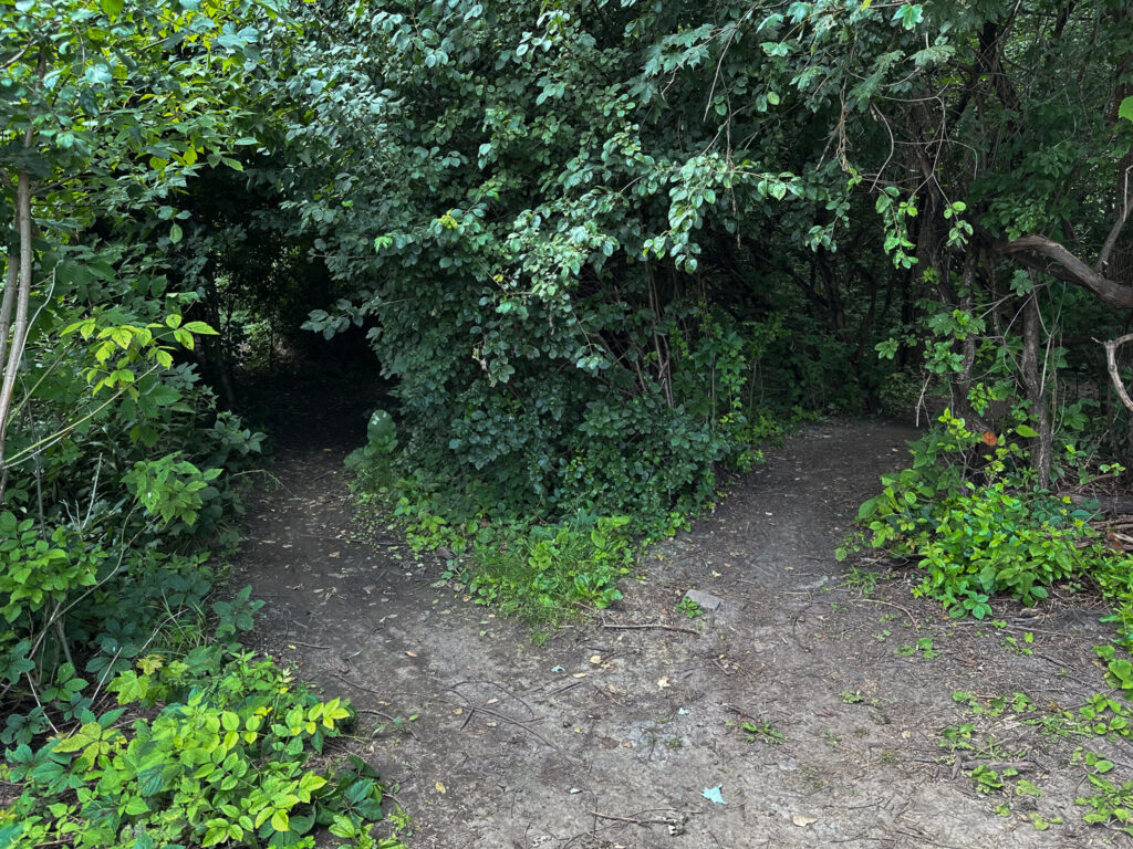 I could see a wall of trees along the side of one street, but I couldn’t see a way in. I followed the street around for a while, and there it was: a wide gravel trail into the woods.