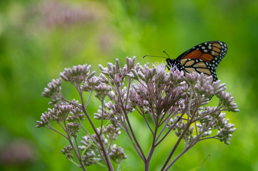 The trail ends on another street of big houses, and I continued along the street until I found another gravel path back into the woods. This path paralleled the previous one, and after a while wound through some fields of Joe-Pye weed, goldenrod, and purple loosestrife, where I met a familiar friend.