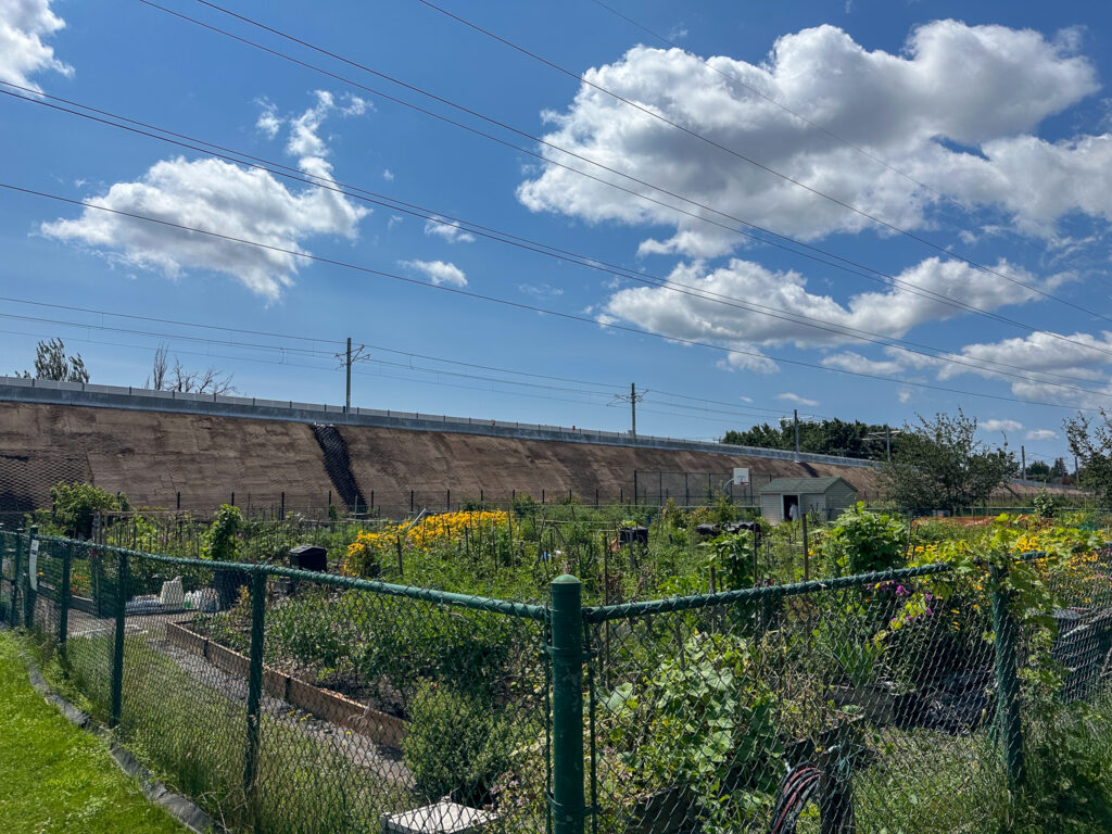 The Parc is nice, with a community garden, swimming pool, BBQ areas, and more, all kind of along an elevated train track. The maps all showed me taking a windy path through this park to get to the nature preserve. So naturally, I followed this path.