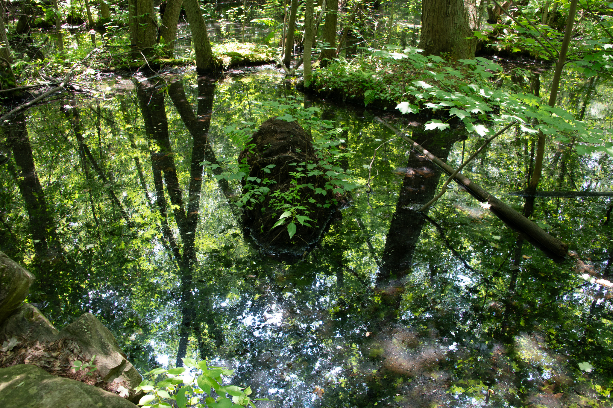 The trail was wide and well maintained, and after just a few steps I felt like I was in a different world of quiet, cool green. Further along, there was evidence of recent water accumulation. And then, before I knew it, I was passing through what I could only describe as a bayou.