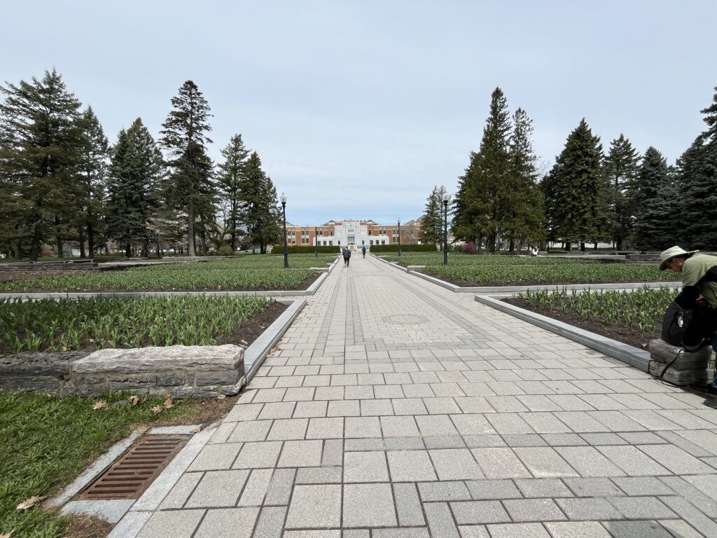 On a more personal note, though most things went pretty smoothly with our move-in, it was nice to restart our ritual of going to the Jardin botanique every week to relax and revel in nature. As the weather starts to warm up here, we’re seeing rapid changes in the landscape. Here are comparison photos of the main “welcome garden” of the Jardin from our first week, then our next visit seven days later. Pretty dramatic:
