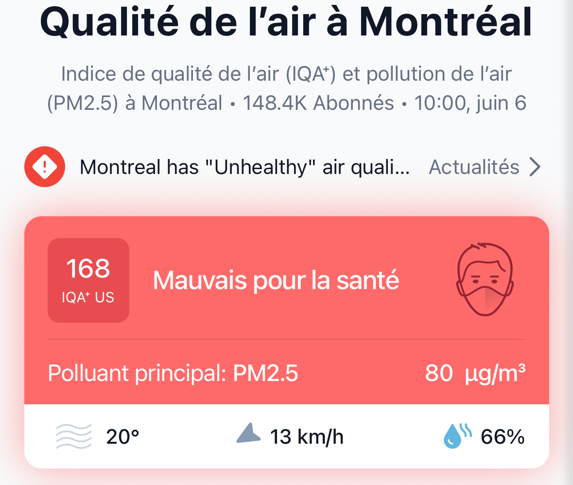 This has resulted in Montreal having the worst air quality of any city in the world today.