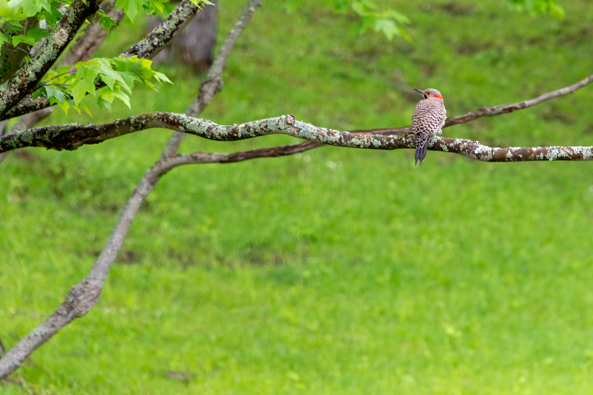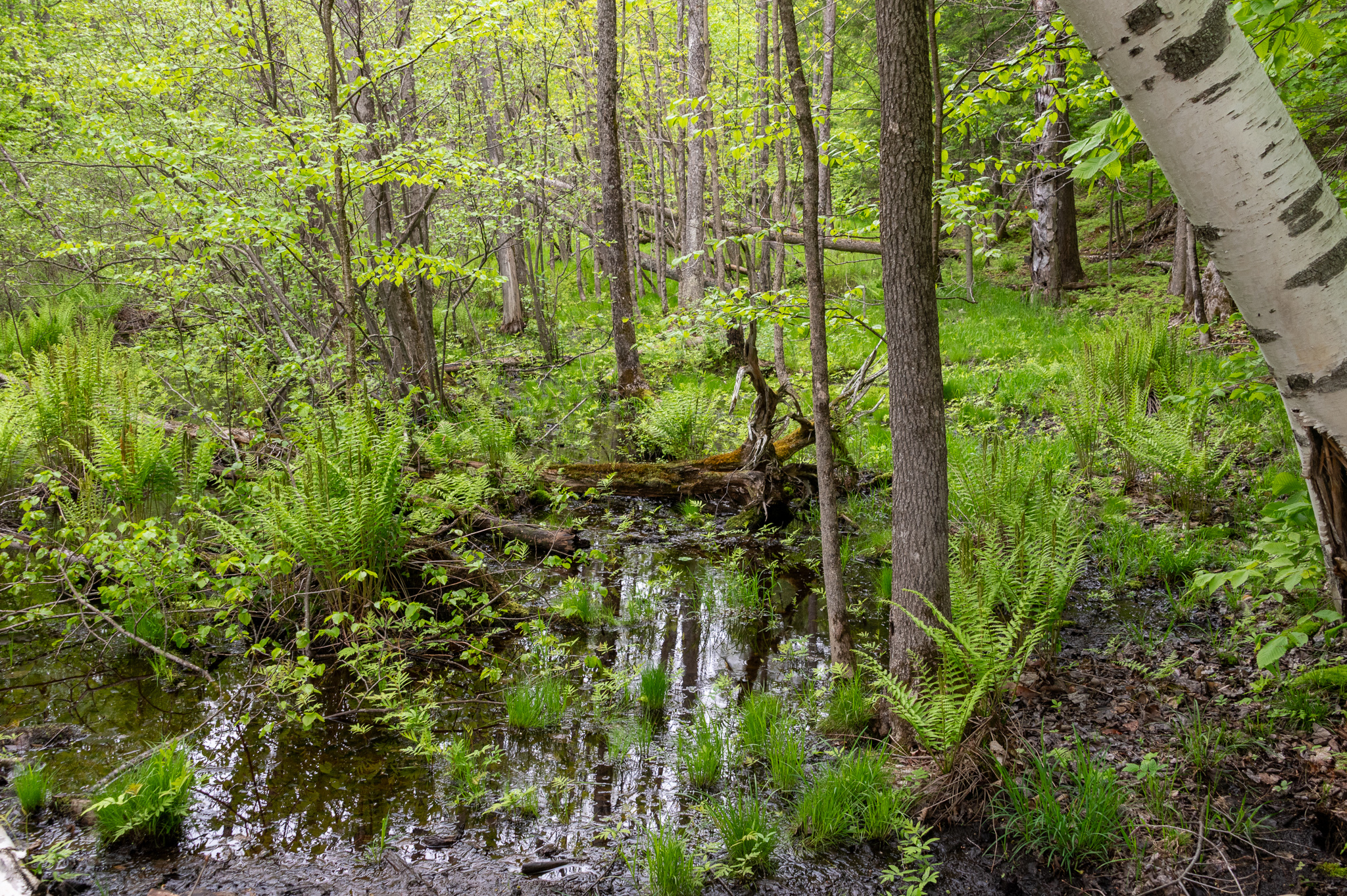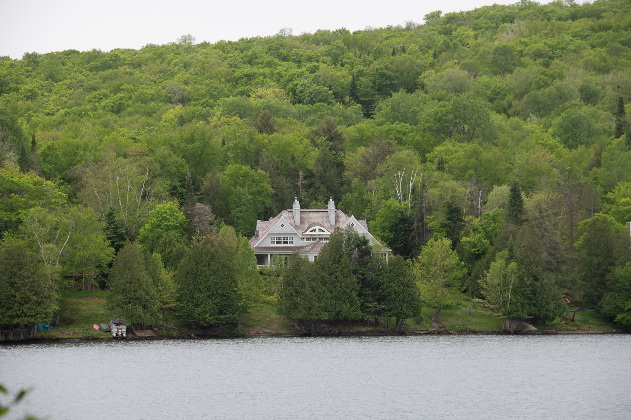 I went walking along the multipurpose path of the P’tite Train, which took me along the banks of Lake Mercier and through woods of a different sort than I’m accustomed to in Montreal. What’s not immediately obvious on the trail is that it’s largely passing through the back yards of homes (or perhaps summer homes) ranging from quaint mountain cottages to massive classical chateaux or modernist mansions. But between these houses, there are areas of woods and rough drainages that are filled with trees, shrubs, and flowers.