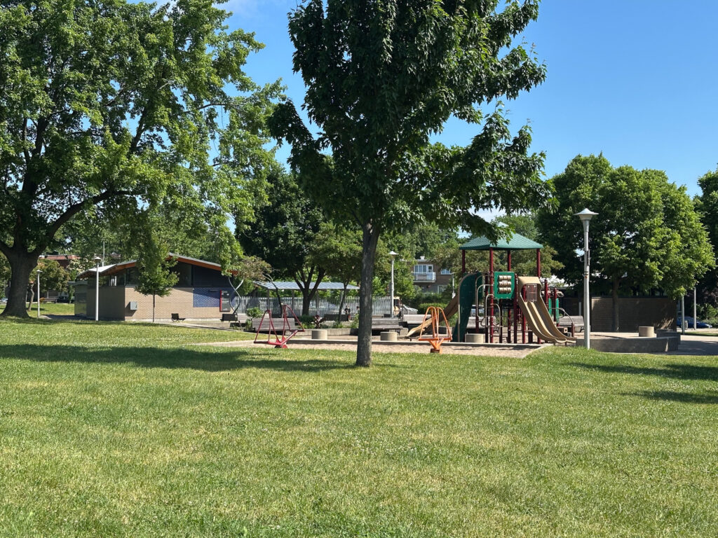 Within a kilometer or two of where we’re living in the Rosemont arrondissement, there are several tiny parks (Parc Raymond Lévesque, an unnamed park on Rue de Tonty, and Parc de la Cité Jardin) , three or four big parks (Parc Joseph Paré, Parc Sainte-Bernadette, Parc Étienne-Desmarteau, and Parc de la Louisiane), and one massive park (Parc Maisonneuve).