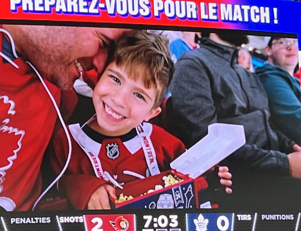 Jumbo smiles on the Jumbotron. Go Habs Go!