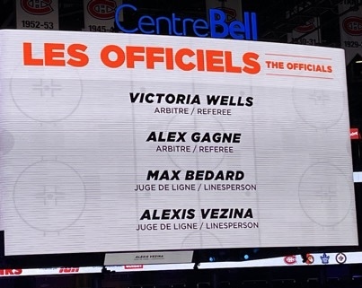 Will Victoria Wells be the NHL’s first female official? Note that they are now using the term “linesperson” instead of “linesman,” hopefully in anticipation of getting more girls into the game.